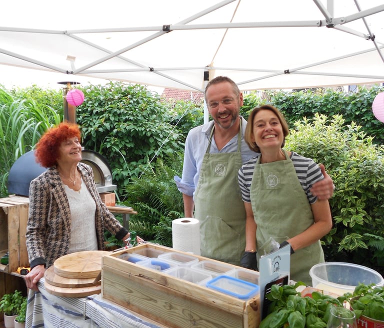 Ik bak de pizza’s niet alleen. La pizza lenta is een echt familiebedrijf. Meestal kom ik met mijn vrouw. En afhankelijk van het aantal gasten helpen soms ook i ragazzi, la nonna, nostra amici en un pizzaiolo professionale ons mee. Pizza's maak je samen!